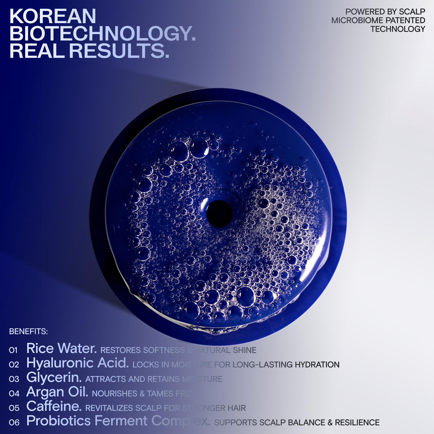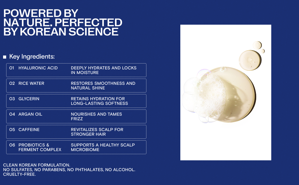 Infused with Hyaluronic Acid, Rice Water, Probiotics Ferment Complex, and ScalpBiome™ — the first patented microbiome scalp technology.